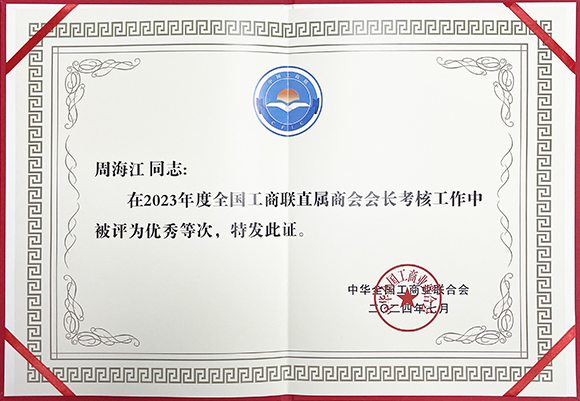 服務您的熱線:010-84647718 我們恭迎您的來電!祝賀周海江會長獲評全國工商聯(lián)直屬商會優(yōu)秀會長!
