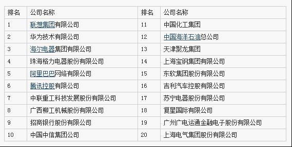 GCC 2012“最具全球競爭力中國公司20強(qiáng)”榜單