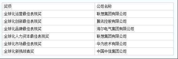 GCC 2012“最具全球競爭力中國公司”單項(xiàng)獎(jiǎng)名單