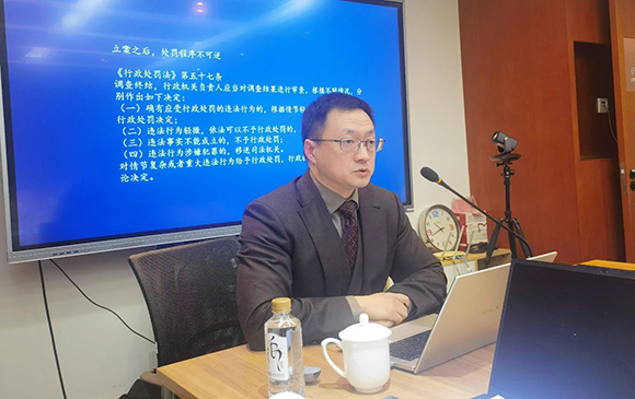 講座邀請北京己任律師事務所高級顧問(合伙人級)、中國法學會證券法學研究會常務理事龍非博士以“保障民營經濟發(fā)展背景下行政處罰的法律應對”為題進行授課。機電商會常務副會長兼專家委員會主任委員鄭超、國合商會黨委常務副書記兼秘書長李兵書線下出席講座并先后致辭。機電商會專家委員會部分委員、國合商會相關部門負責人、各類企業(yè)代表30余人線下出席講座。講座由機電商會專家委員會副秘書長王立杰主持。