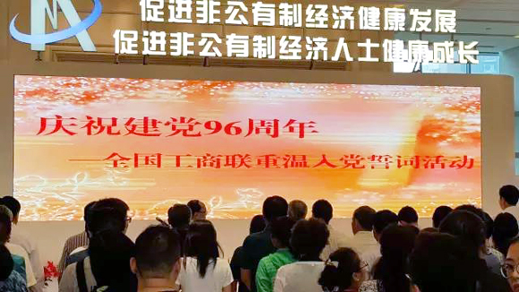 2017年6月29日,全國工商聯(lián)黨委在全聯(lián)辦公樓,舉行“七一重溫入黨誓詞暨立足崗位發(fā)揮先鋒模范作用”座談會,全聯(lián)機關全體黨員干部、直屬單位班子黨員成員、直屬商會黨員代表共計200余人參加會議。全國工商聯(lián)黨組成員、副主席楊啟儒同志主持會議。