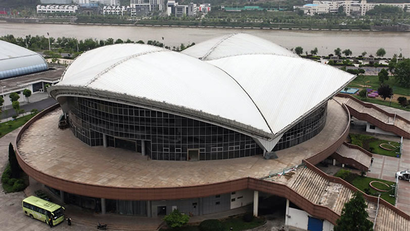 黃山體育館位于黃山市,1999年建設(shè)。黃山市標(biāo)志性建筑之一,是一座具有體育競賽、商品博覽、大型集會、休閑健身等多功能的現(xiàn)代化綜合性設(shè)施。采用