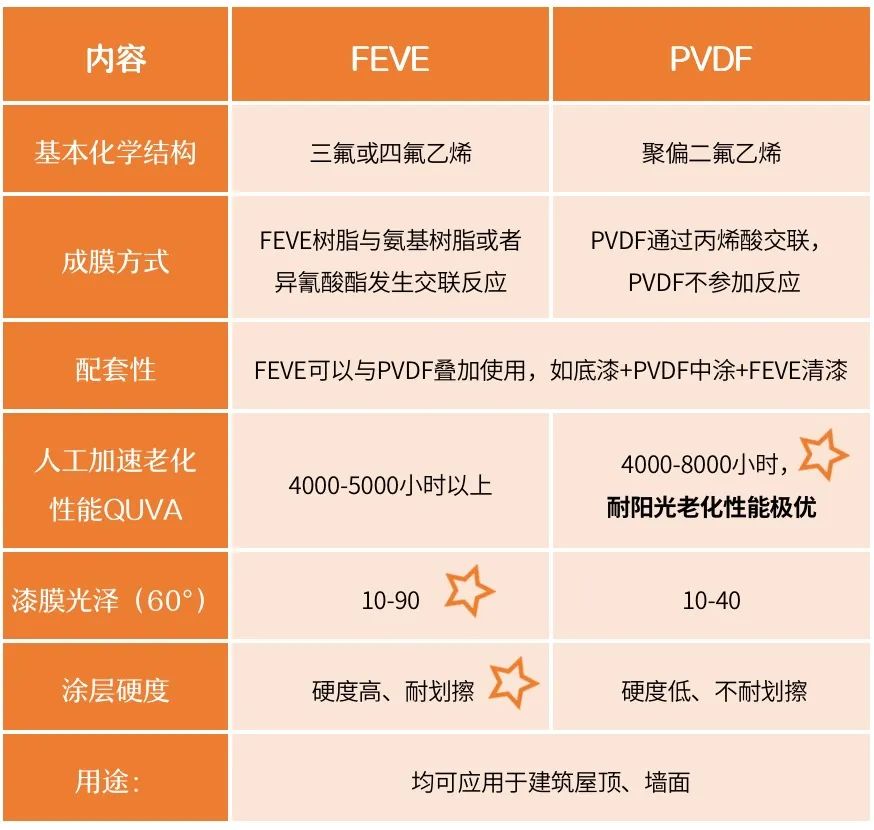 FEVE是聚氟烯烴-烷基乙烯基醚共聚或者氟烯烴-烷基乙烯基酯共聚樹脂的英文縮寫,該樹脂制成的涂料具有高光澤、高透明度的特點,兼具優秀的耐候性可在常溫下交聯固化,也可以適應高溫固化。